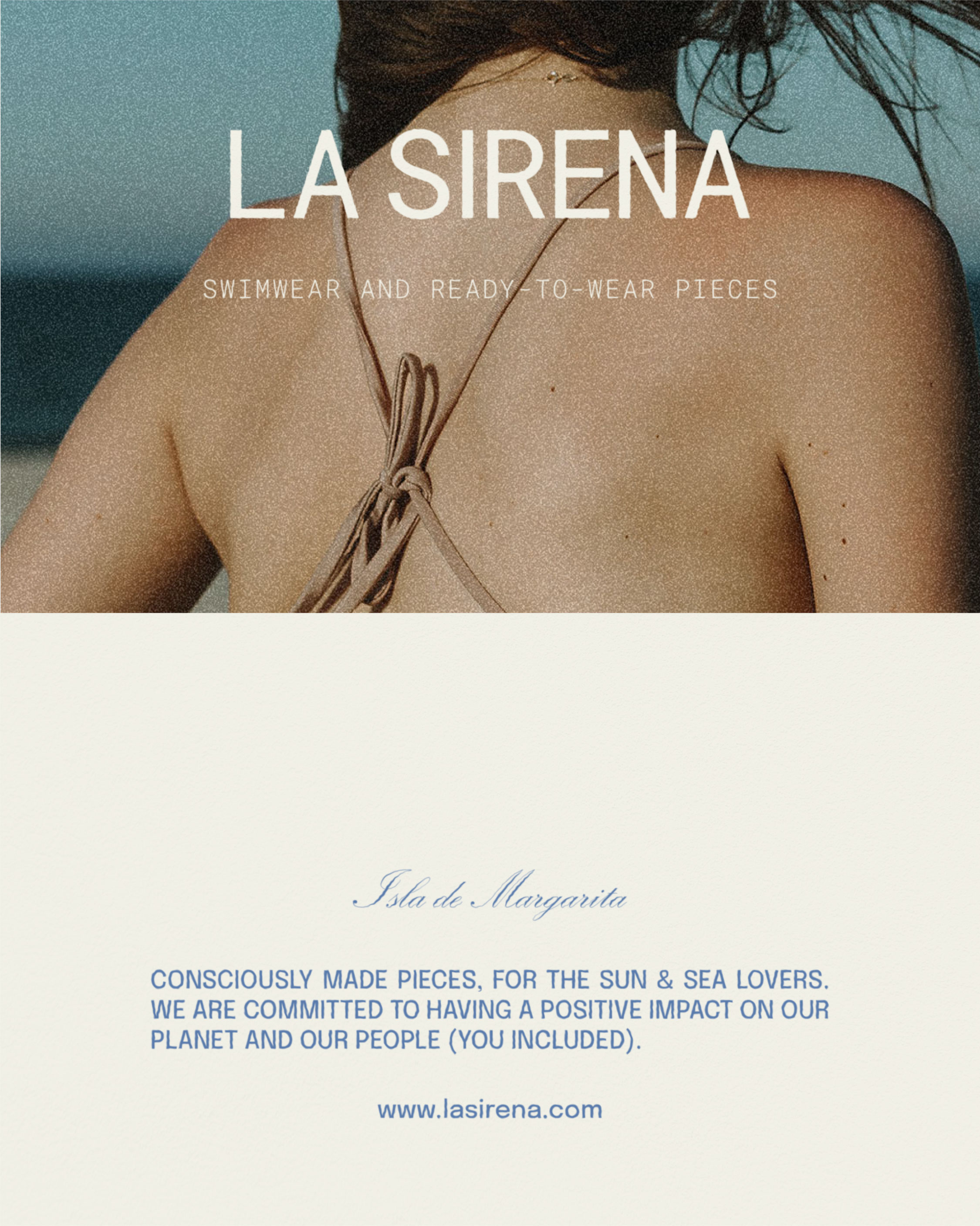 La Sirena is a conscious swimwear and ready-to-wear brand based in Venezuela that needed a complete brand identity to launch. The brand's concept centered on 80's summer nostalgia—evoking feelings of freedom, warmth, and living life fully. The challenge was creating a visual identity that felt both nostalgic and fresh, reflecting the brand's values of conscious design while capturing that specific summer energy.
