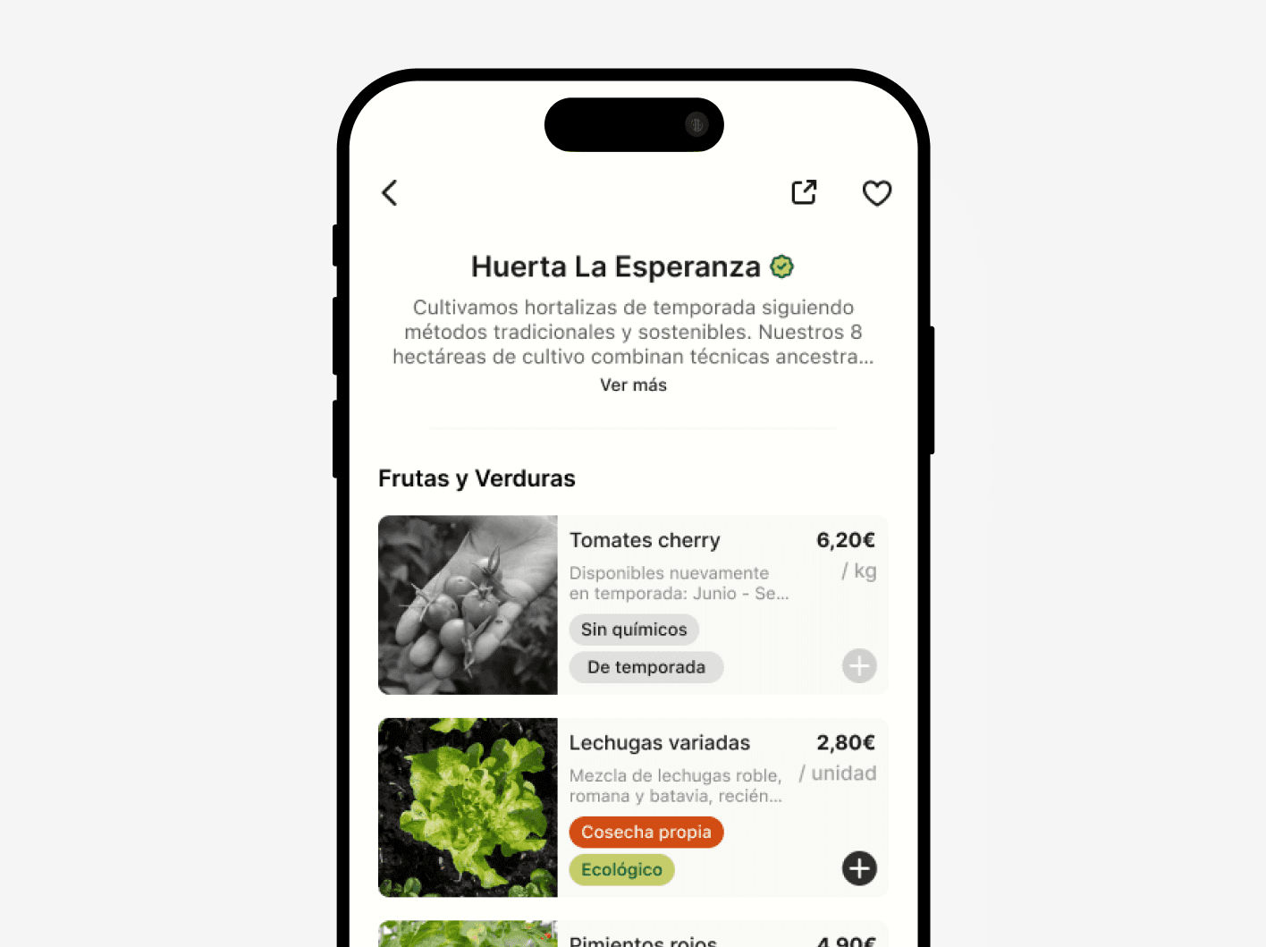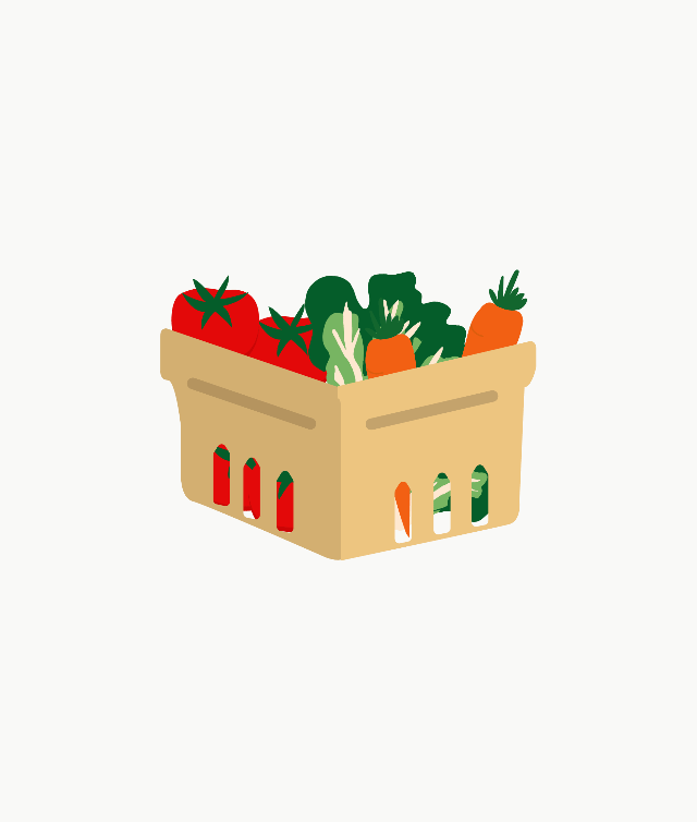 Custom Illustrations — Rather than stock photography (sterile and generic), I created custom produce illustrations for each category (vegetables, eggs, milk, meat, olive oil). These provide visual warmth and category recognition while celebrating the character of real farm products—imperfect, seasonal, alive.