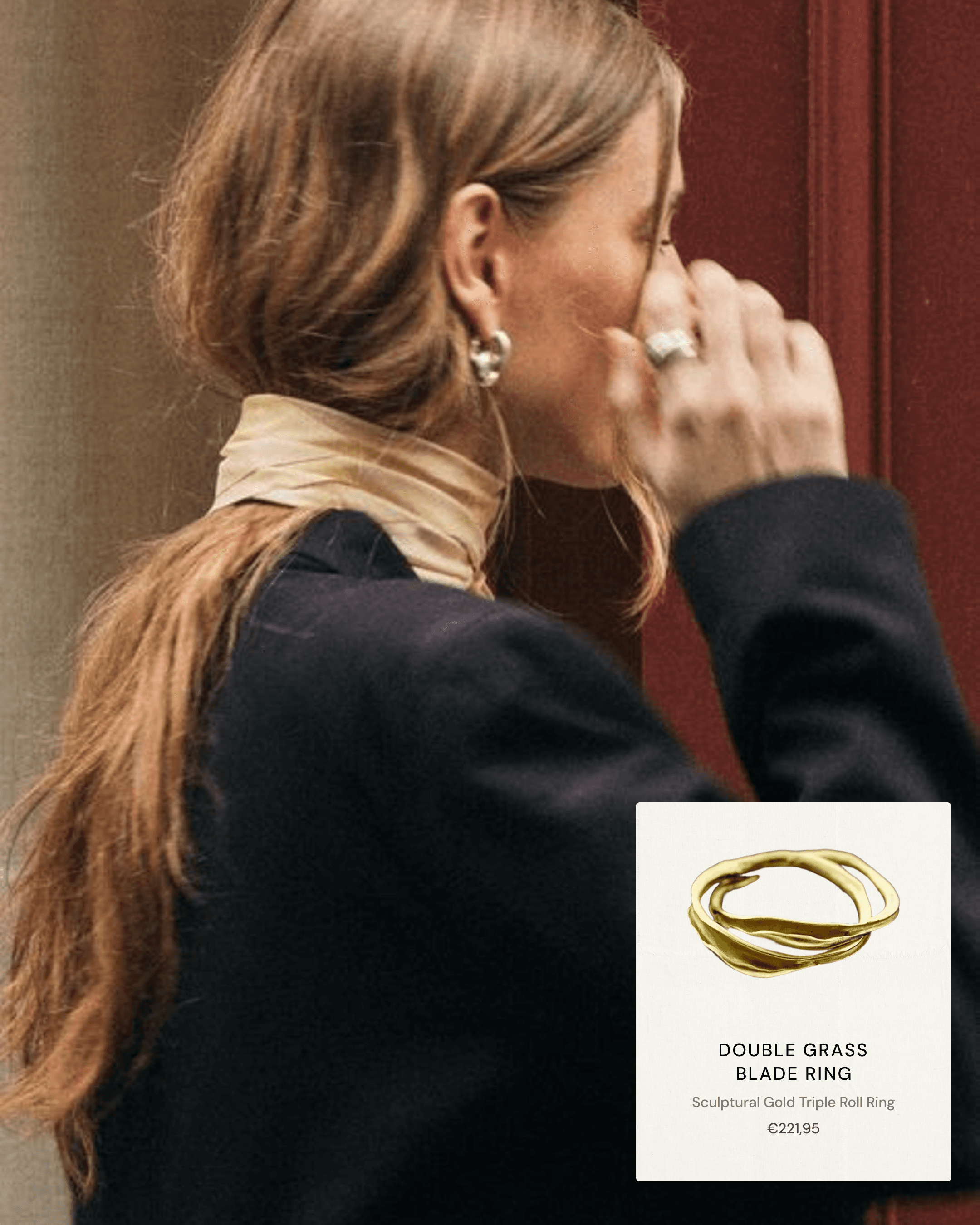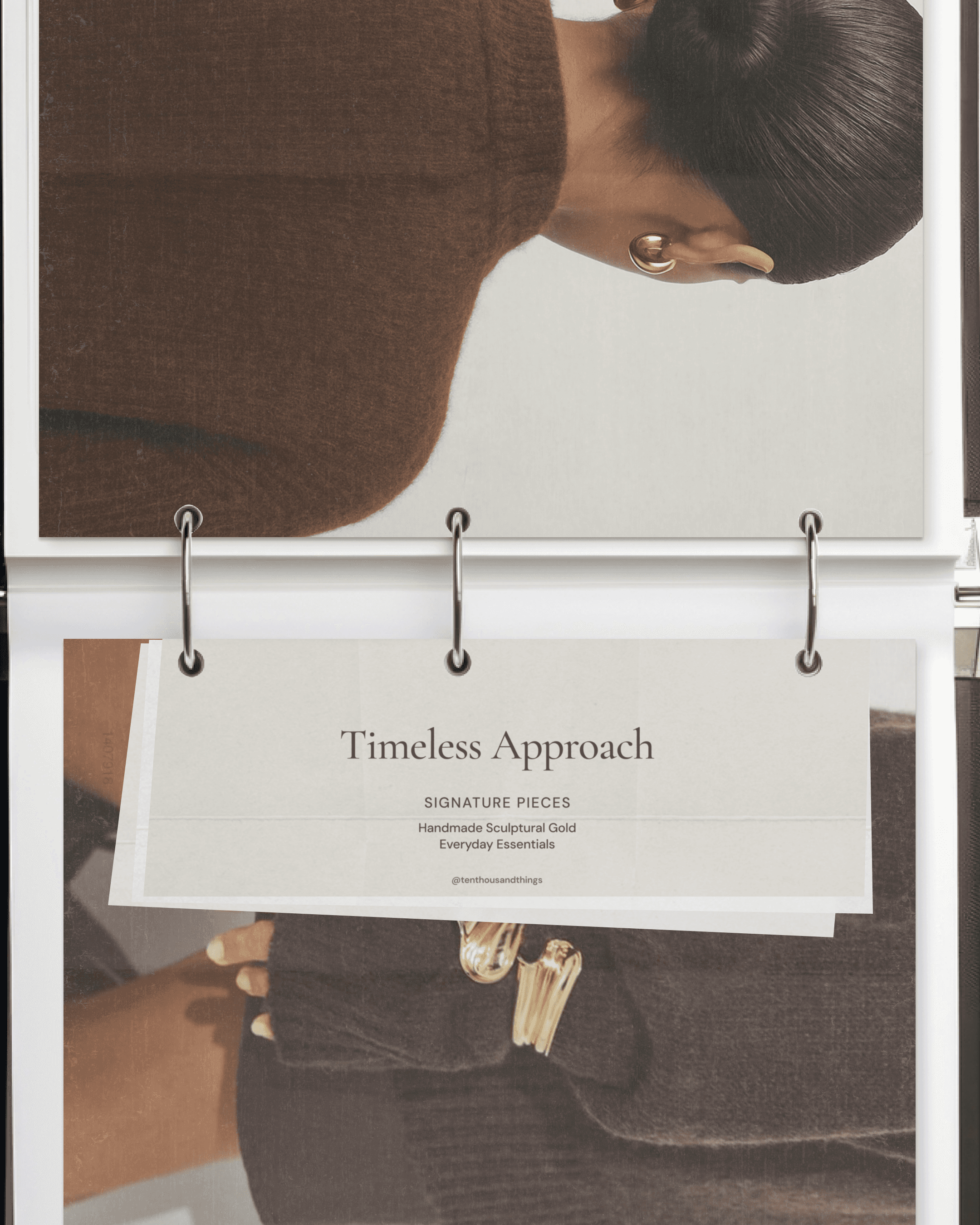 I designed a mix of Instagram posts and stories that combine lifestyle photography with clean product presentations. The art direction emphasized real, wearable moments—hands styled with multiple pieces, natural gestures, everyday elegance—rather than sterile product shots. This approach makes the jewelry feel accessible while maintaining the brand's refined aesthetic.
