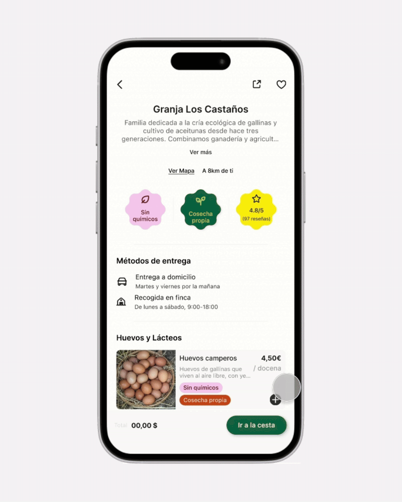 Raíz is a mobile marketplace connecting El Bierzo's local farmers directly with urban consumers, transforming a fragmented regional food system into a thriving direct-to-consumer platform. The app eliminates the 45-65% retail markup forcing residents to choose between expensive local products or imported alternatives, while simultaneously increasing farmer revenue from 18-25% to 75% of retail value.