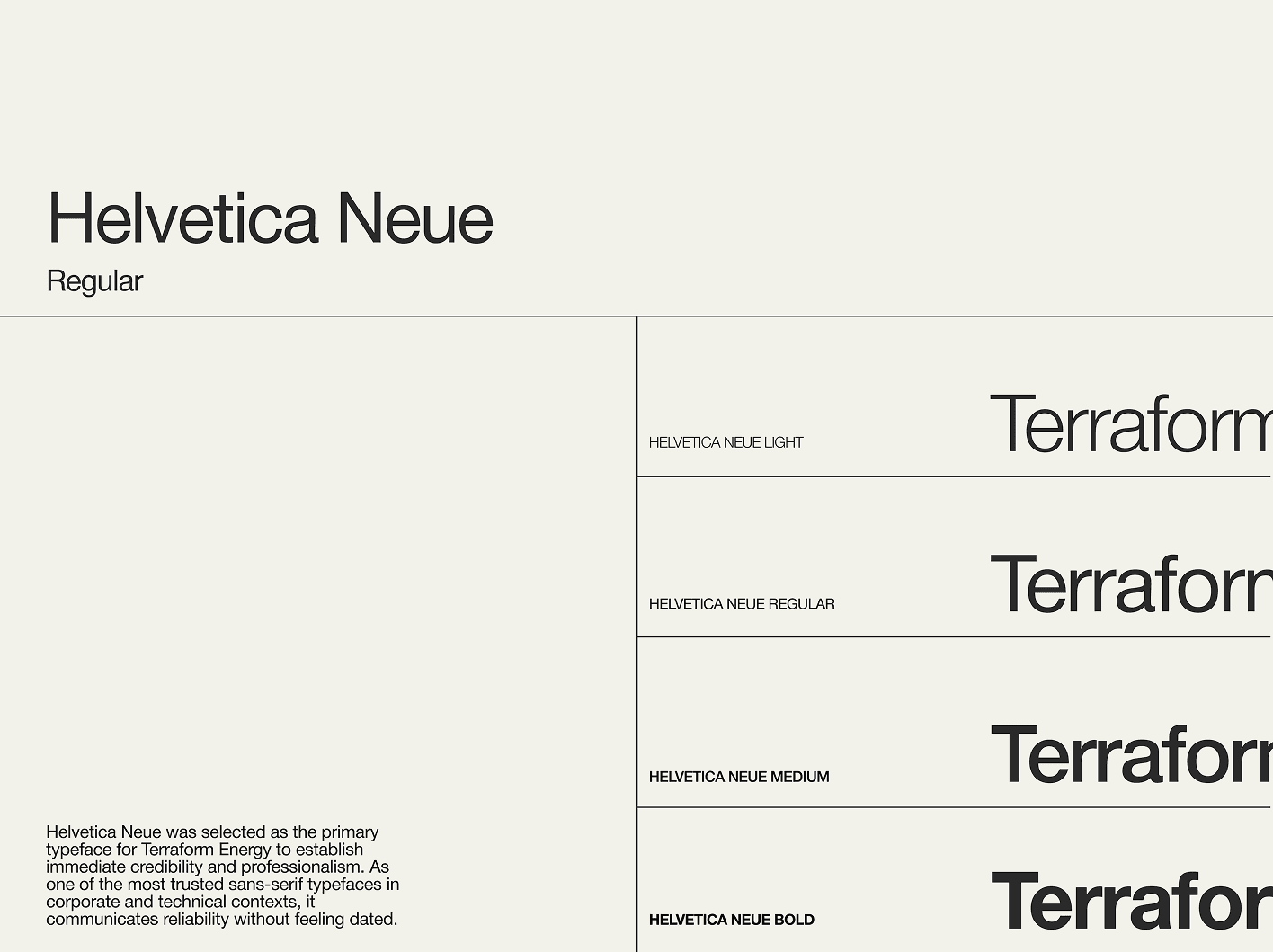 I decided on Helvetica Neue Light exclusively for headlines, a strategic choice that expresses Terraform's philosophy through form. The lightness says "we're open, transparent, nothing to hide." The geometric precision says "we're systematic and reliable."