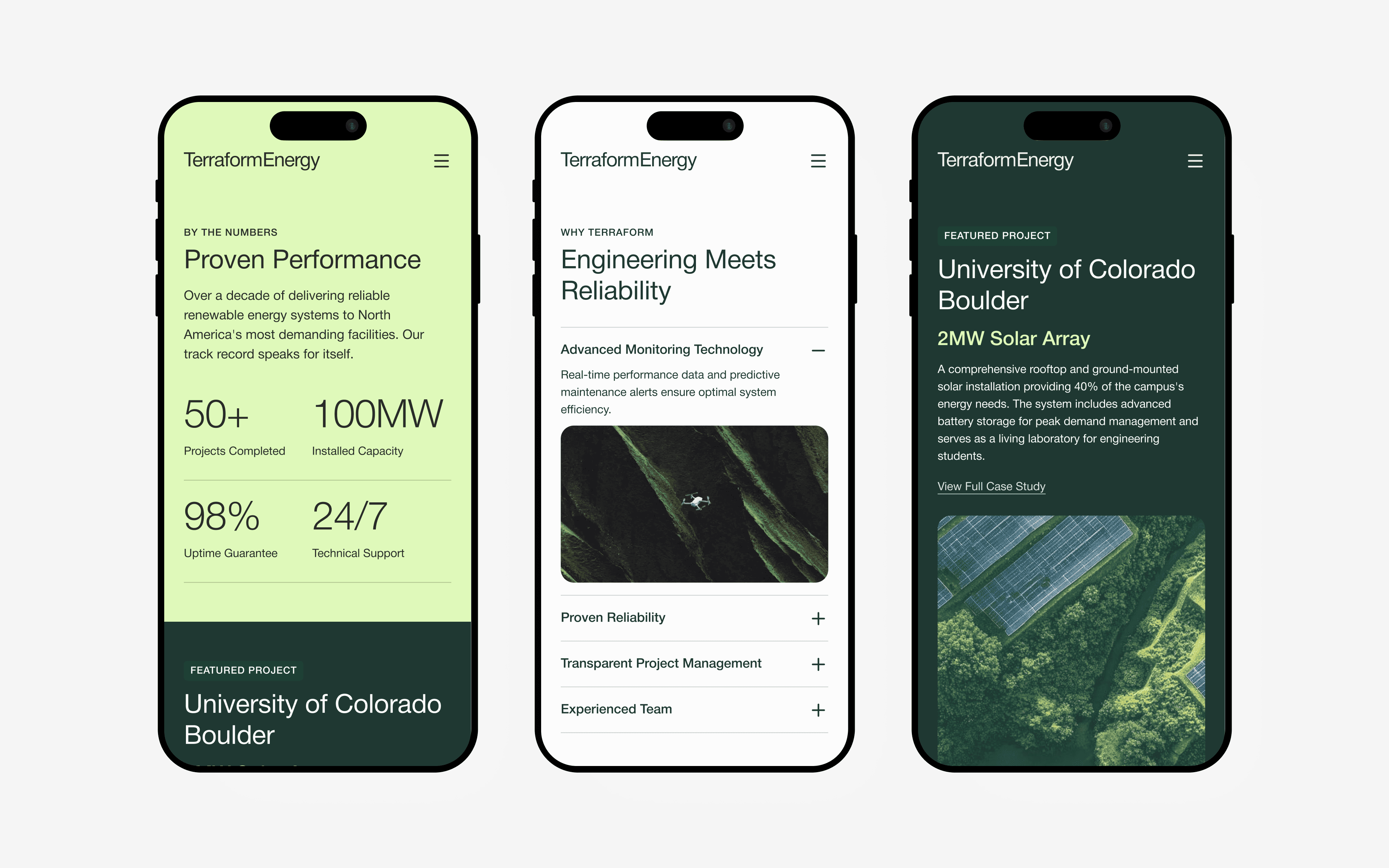 Enterprise decision-makers research on mobile during commutes, between meetings, in quiet moments. The mobile experience serves their need for quick, focused information while maintaining Terraform's organic, nature-connected philosophy.